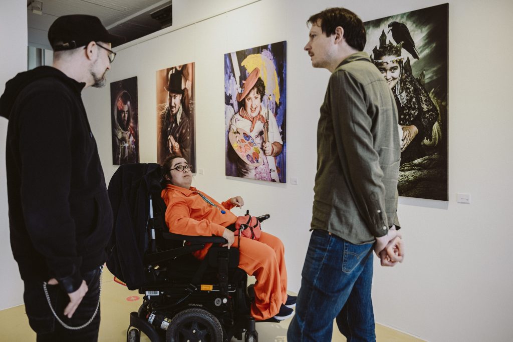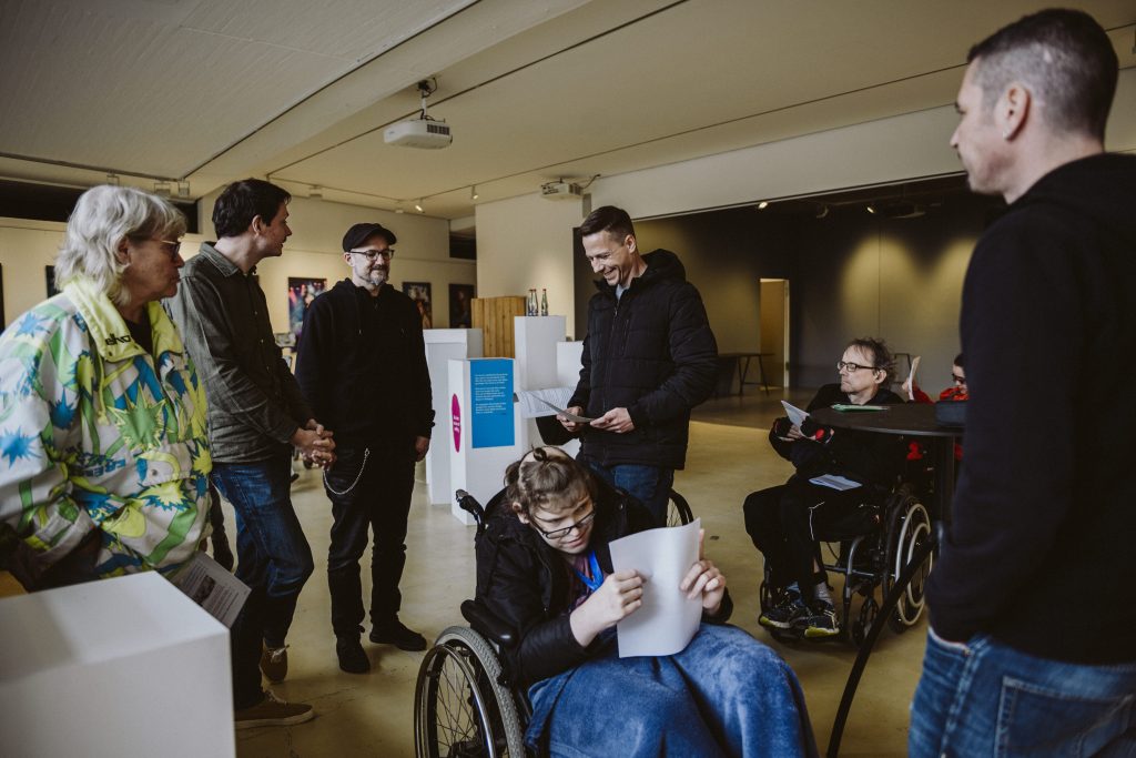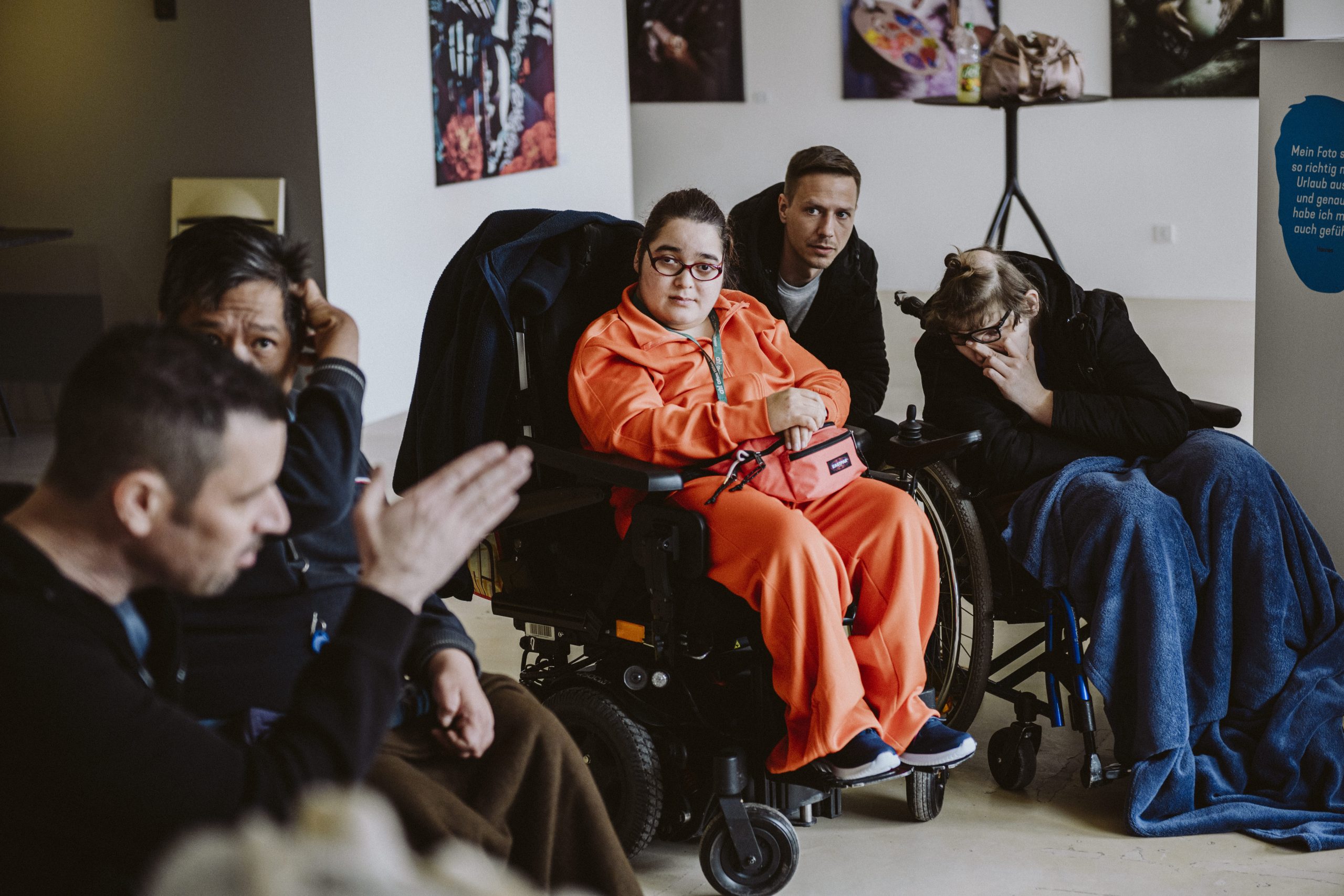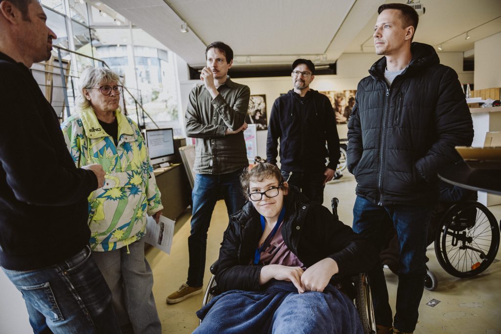 Das Ergebnis dieser Vorbereitung zeigte sich eindrucksvoll während der Ausstellung: Die Bewohnerinnen führten selbstbewusst und kompetent durch die Exponate und den Film, erklärten Hintergründe, teilten persönliche Eindrücke und kamen mit den Besucherinnen in einen offenen Austausch. Die Schulung wurde so zu einem zentralen Bestandteil des Projekts – als Brücke zwischen künstlerischer Arbeit, persönlicher Erfahrung und öffentlicher Vermittlung und als wichtiger Beitrag zu gelebter Teilhabe und Selbstermächtigung.