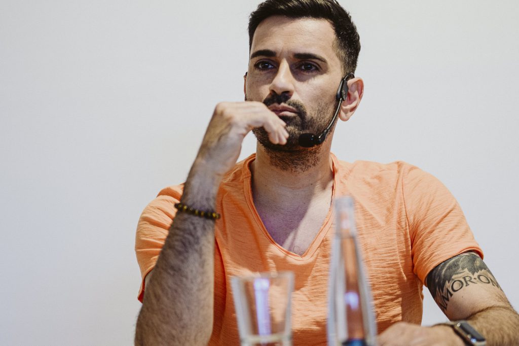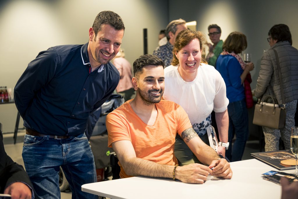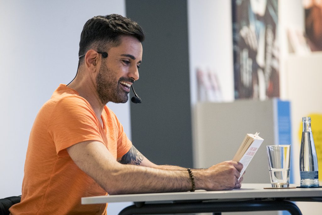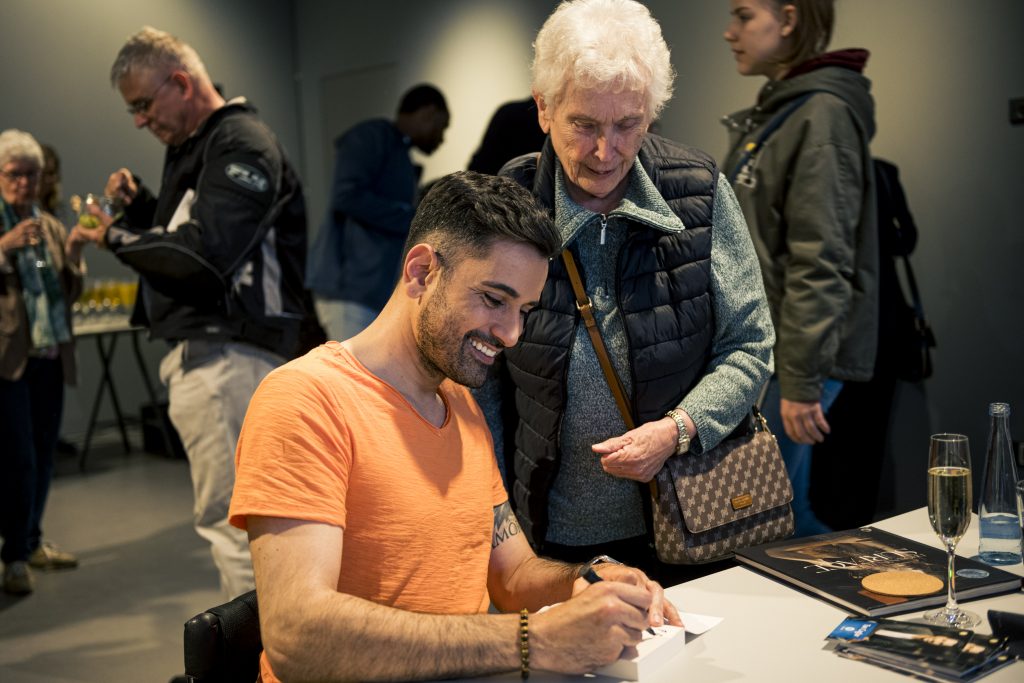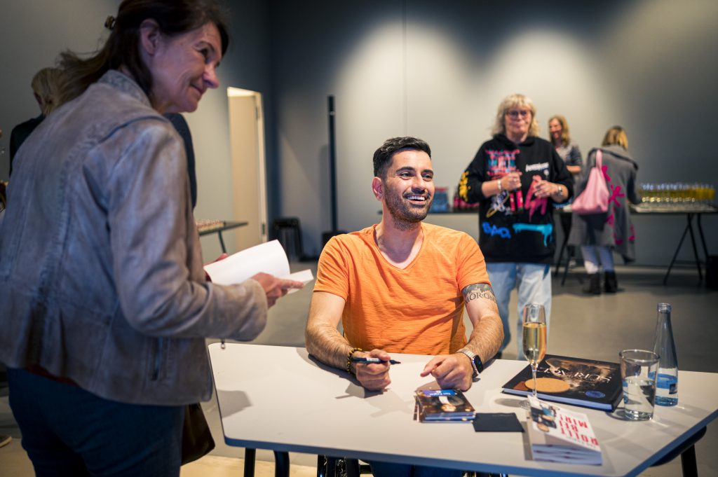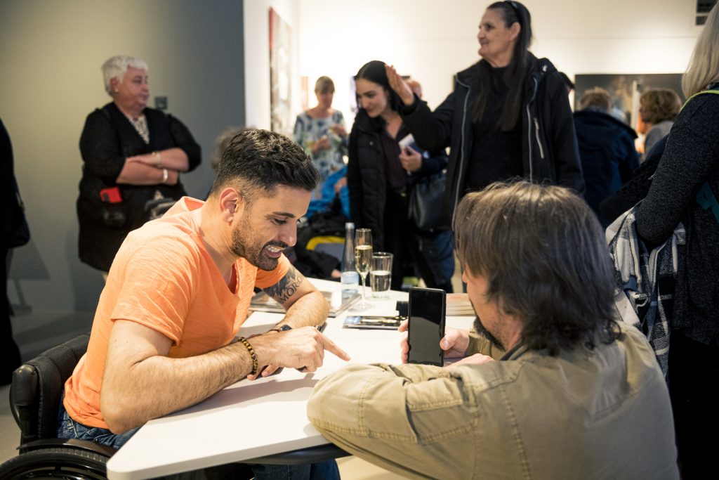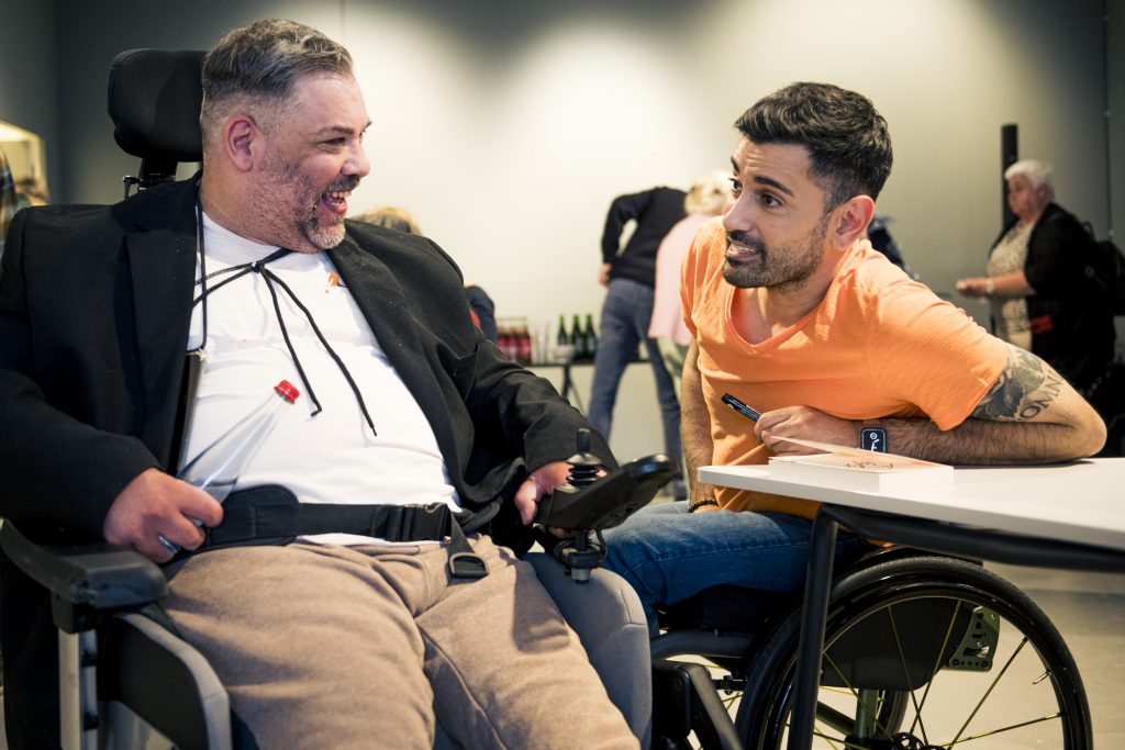 Ein besonderer Höhepunkt im Rahmen der Ausstellung war die Lesung des Comedians, Schauspielers und Autors Tan Caglar aus seinem Buch Rollt bei mir. Mit großer Offenheit, feinem Humor und viel Selbstironie nahm Tan Caglar das Publikum mit in seinen Alltag, seine Gedankenwelt und seine Erfahrungen als Rollstuhlfahrer in einer nicht immer barrierefreien Gesellschaft.